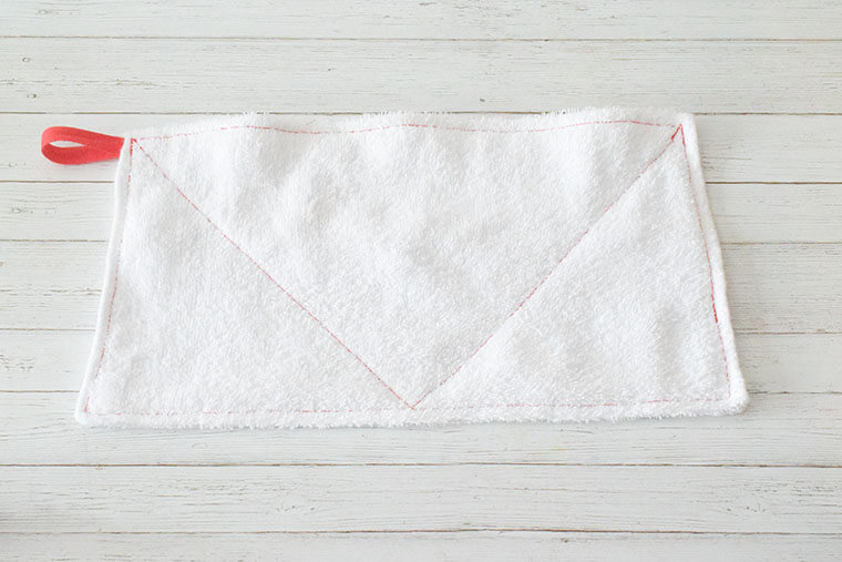 ・二重(にじゅう)に折(お)りたたむので、分厚くないタオル生地(きじ)のほうが、縫いやすいと思います
